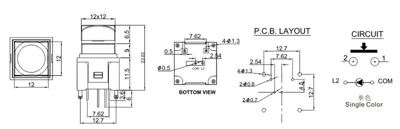 帶燈按鈕開關(guān),LED燈有單燈,雙燈以及RGB全彩,按鍵尺寸有多種規(guī)格,可根據(jù)各大需求任意定制各種絲印,這類按鍵常用于廣播控制臺,視頻音頻處理器等。