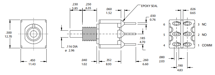 Contact Rating: 1A@120VAC or 28 VDC;