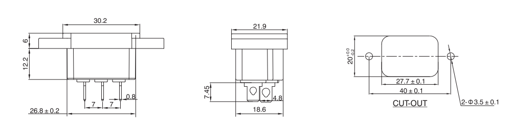 治具插座S-03系列,單插、二合一、三合一保險(xiǎn)插座等多種規(guī)格,大電流10A ,15A,產(chǎn)品通過UL VDE CCC CB等認(rèn)證,常見于家用電器,音響功放機(jī)等